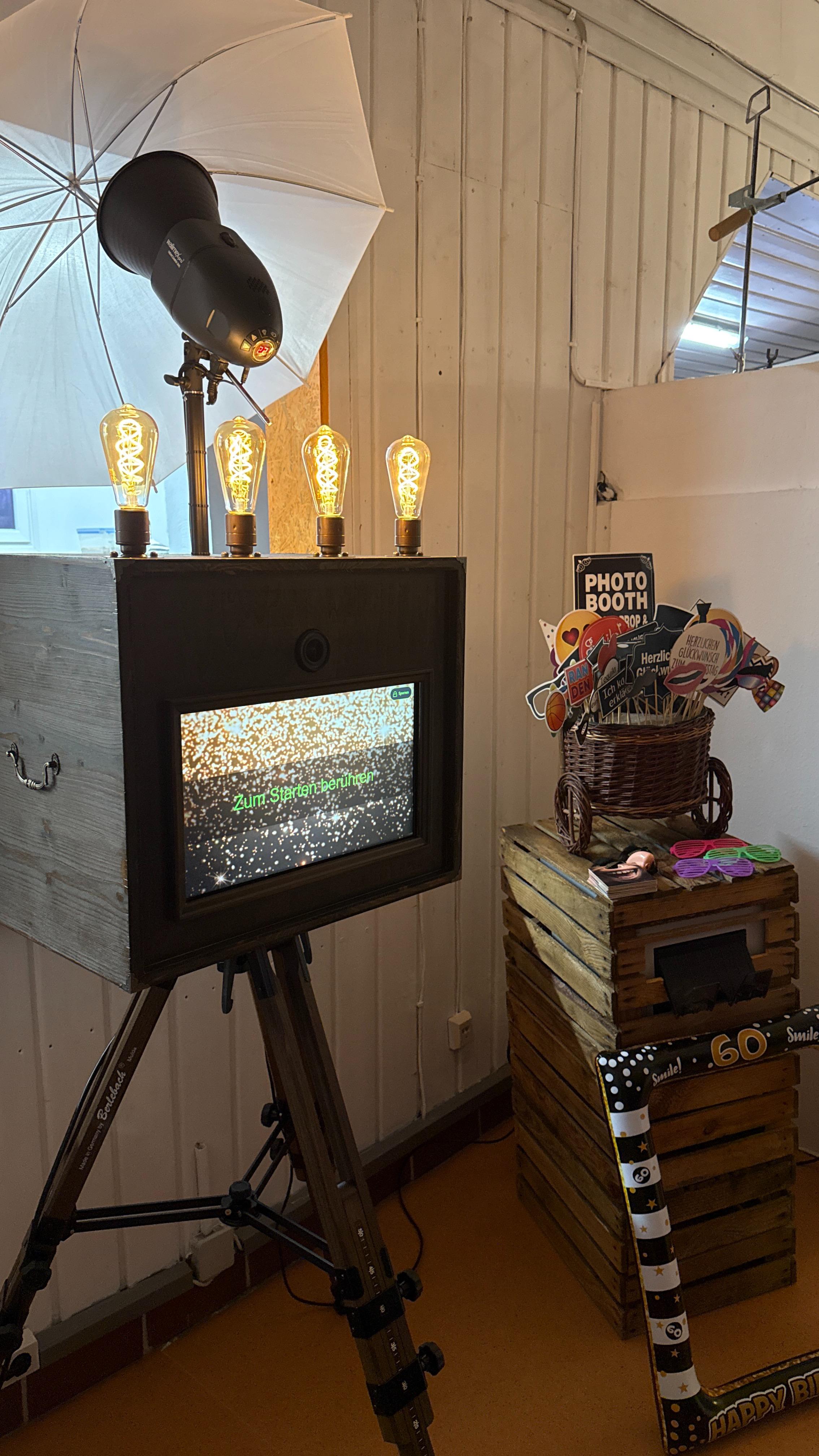 Wir liefern die Fotobox rechtzeitig an, bauen sie auf und erklären kurz die Bedienung.